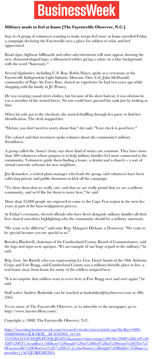 Business Week covers how the Military Made To Feel At Home.Originally from Business Week