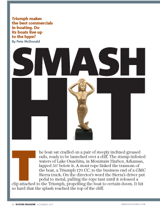 Triumph boats in national Boating Magazine article titled SMASH HIT "Triumph makes the best commericals in boating. Do its boats live up to the hype?"Read the entire article here