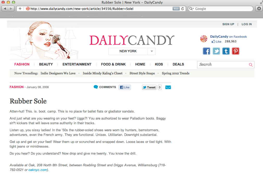 Daily Candy Features Palladium PALLADIUM Jan 8 Written By Guest User Palladium "Baggy" Shoe featured on Daily Candy.Read more about it here Daily Candy Guest User