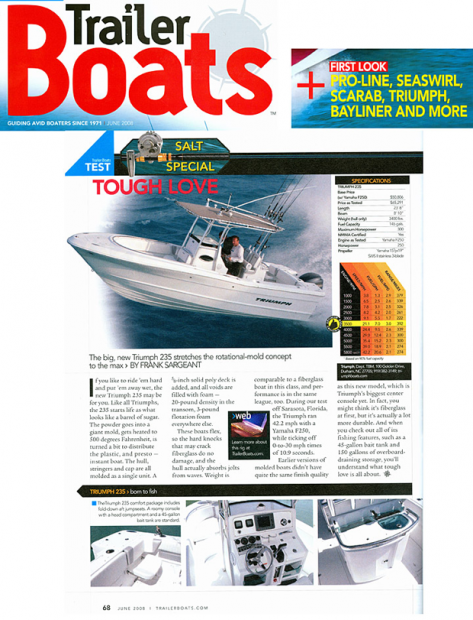 Trailer Boats magazine - The big, new Triumph 235 stretches the rotational-mold concept to the max.Original article in Trailer Boats archives