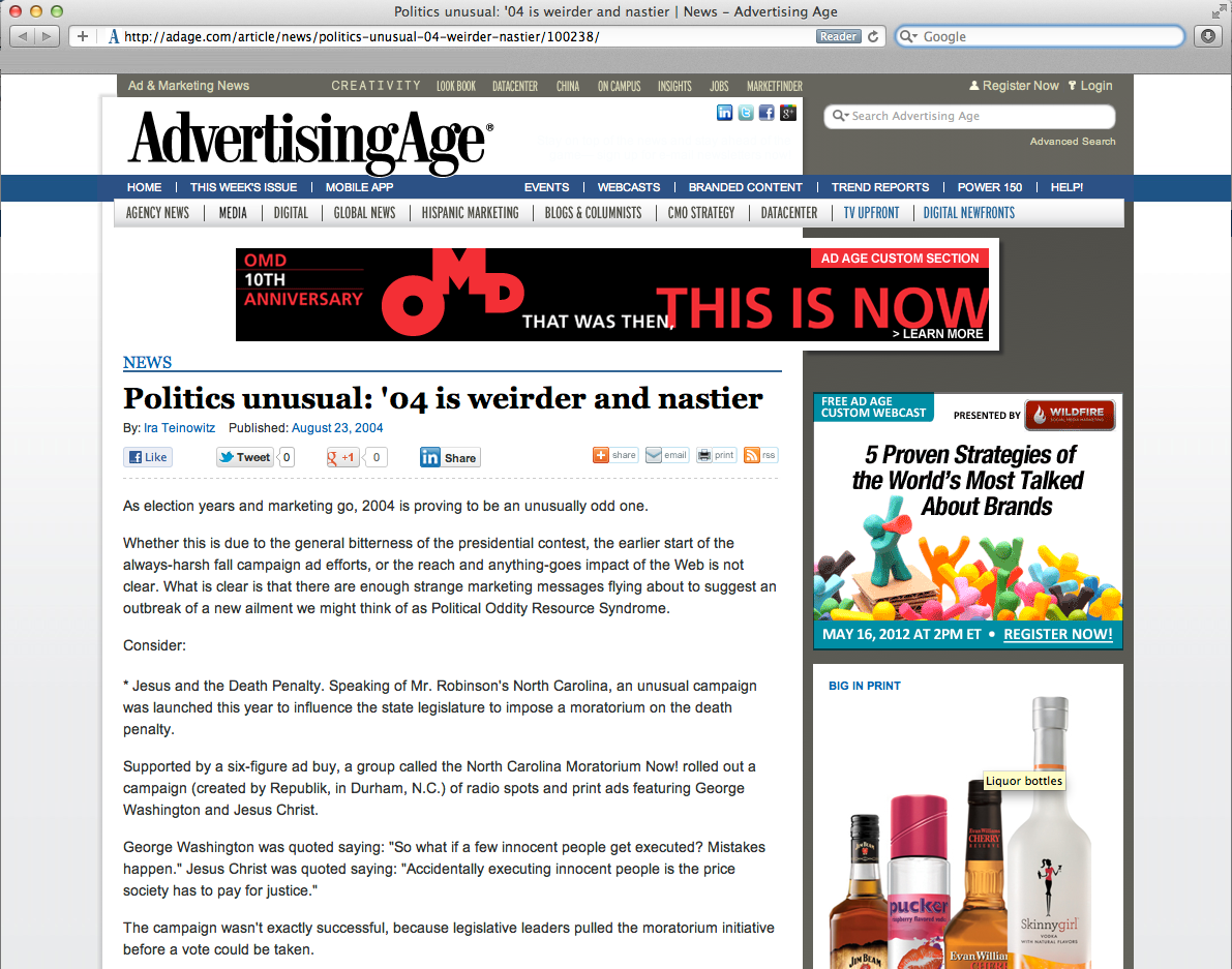 Ad Age says that it's "Politics unusual: '04 is weirder and nastier". The Republik is highlighted.Read more about it here