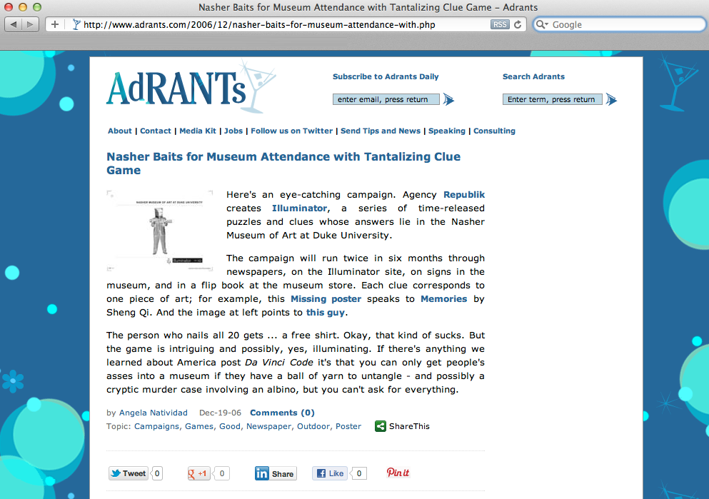 AdRants notes: Nasher Baits for Museum Attendance with Tantalizing Clue Game. The Republik is mentioned.Read more about it here