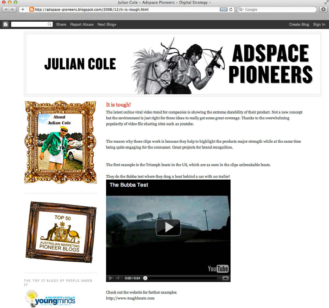 Adspace Pioneers blogs about the latest online viral video trend for companies is showing the extreme durability of their product... Triumph is featured.Read more about it here