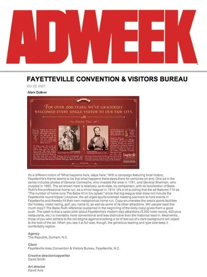 AdWeek Features Fayetteville FAYETTEVILLETHE REPUBLIK Oct 22 Written By Guest User Original article in AdWeek archives AdWeek Guest User