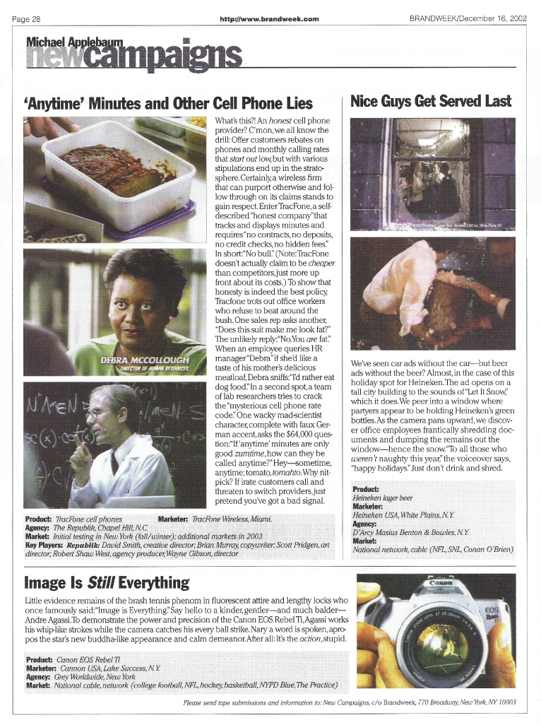BrandWeek mentions The Republik THE REPUBLIKTRACFONE Dec 16 Written By Guest User Brandweek mentions the Republik and TracFone.Original article in Brandweek archives Brandweek Guest User