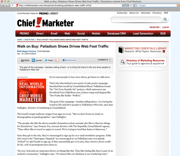 Chief Marketer reviews Palladium's geocaching efforts. The Republik is quoted.Read more about it here