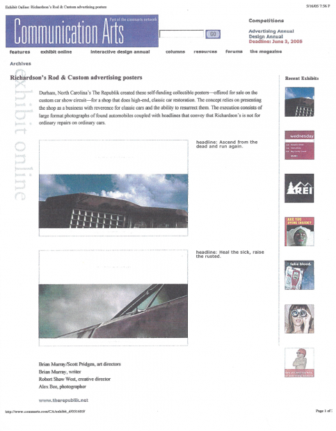 Communication Arts features Richardson's Rod & Custom and the RepublikOriginal article in Communication Arts archives