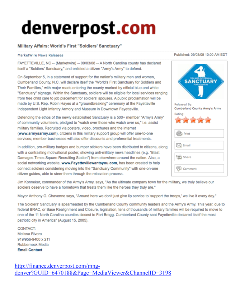 Denverpost.com features Army's Army and FayettevilleOriginal article in Denverpost.com archives