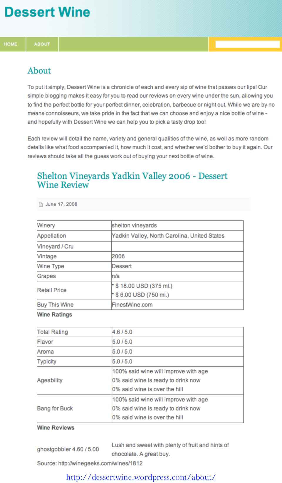 Dessert Wine blogs about the 2006 Dessert Wine from Shelton Vineyards.Original article in Dessert Wine archives