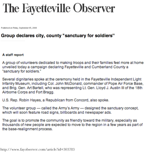 The Fayetteville Observer features Army’s Army as Fayetteville is a sanctuary for soldiers.Original article in Fayetteville Observer archives