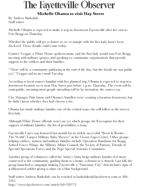 Fay Observer Covers Michelle Obama's Trip To Hay Street