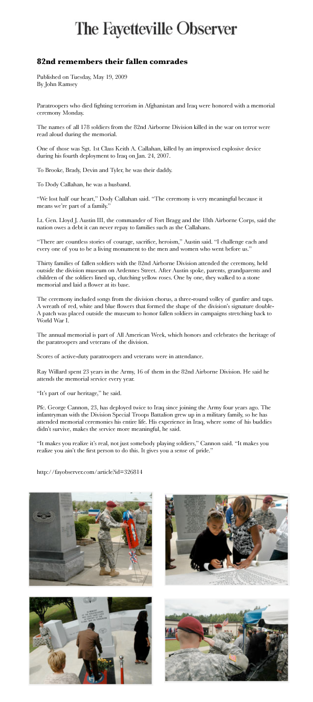 The Fayetteville Observer features Fayetteville as 82nd remembers their fallen comrades. Original article in Fayetteville Observer archives
