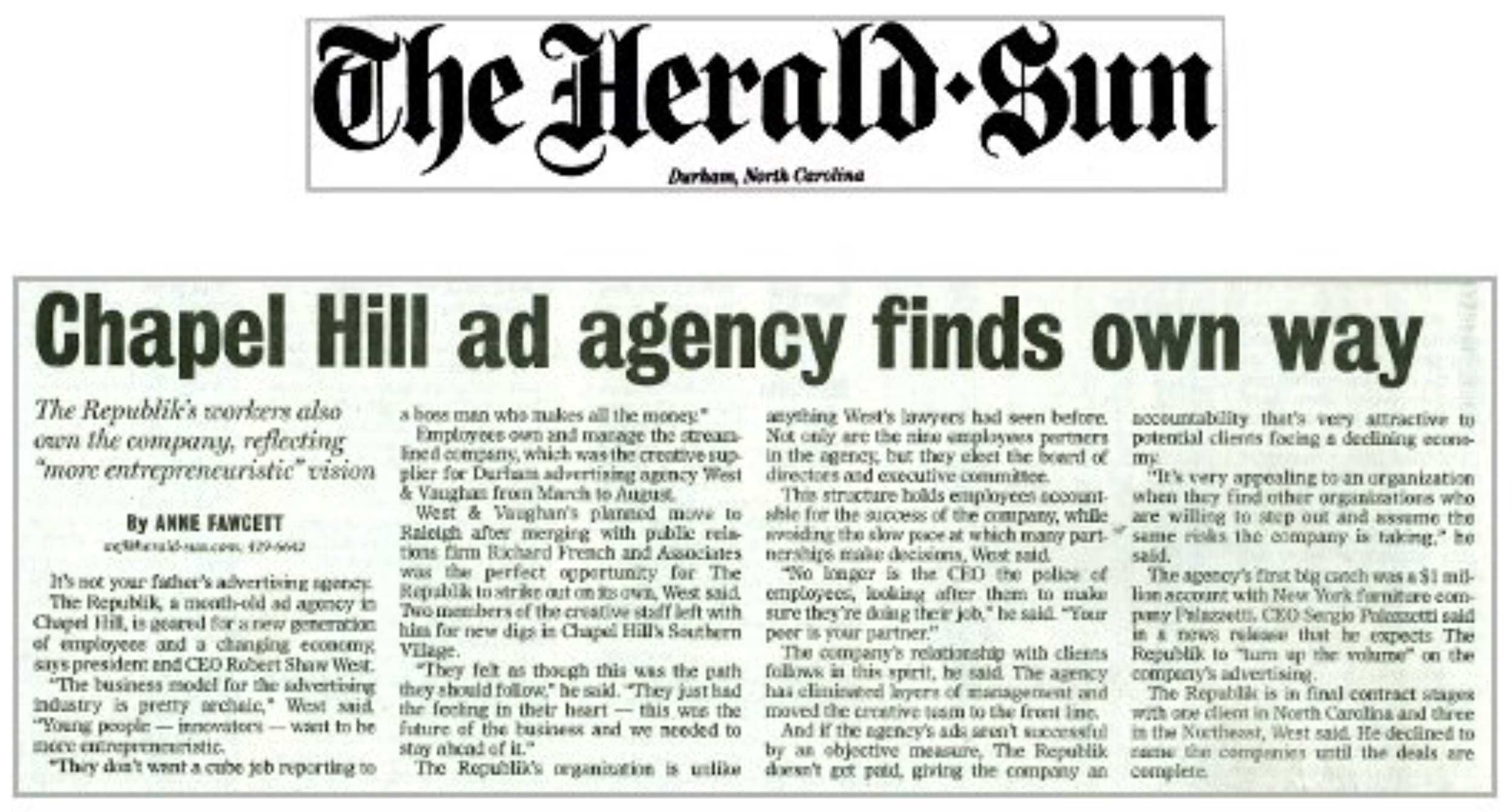 The Herald Sun talks about the Republik.Original article in the Herald Sun archives.(Client reference found here)