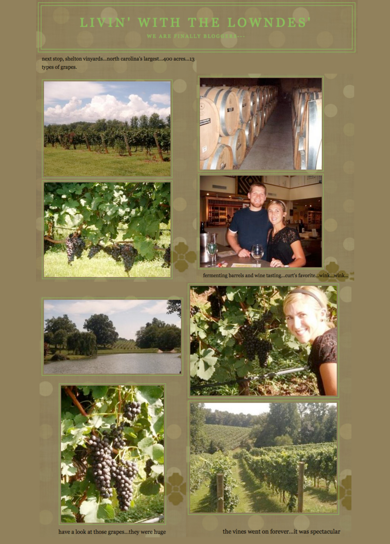 Blogging about their one year anniversary trip, Livin' With The Lowndes' highlights a trip to Shelton Vineyards, complete with beautiful photos.Read more about it here