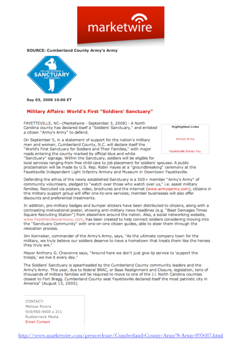 MarketWire Features Army’s Army FAYETTEVILLEARMYS ARMY Sep 3 Written By Guest User MarketWire features Army’s ArmyOriginal article in MarketWire archives MarketWire Guest User