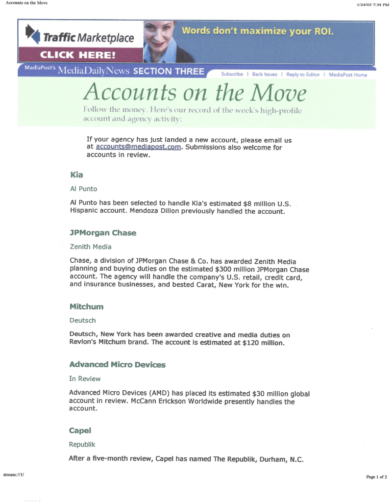 MediaPost's Accounts on the Move features the Republik and Capel.Original article in MediaPost archives