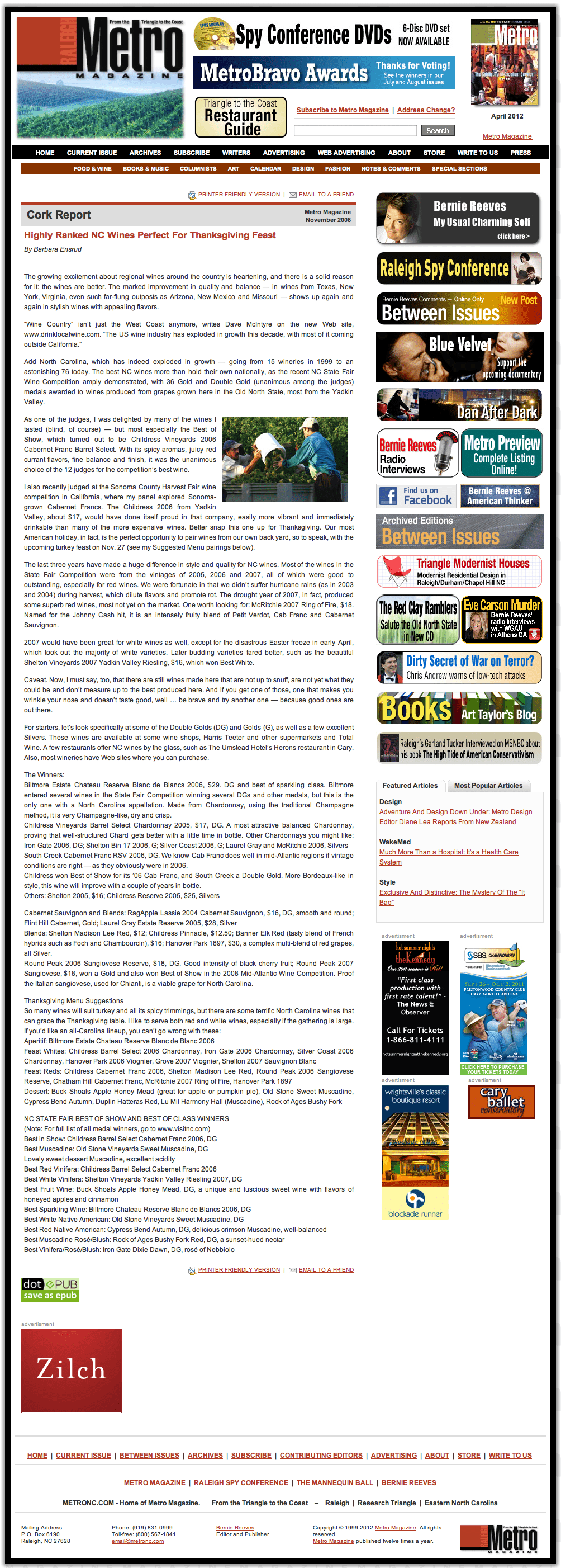 Metro Magazine highlights Shelton Vineyards as a great local wine for your holiday. Read more about it here