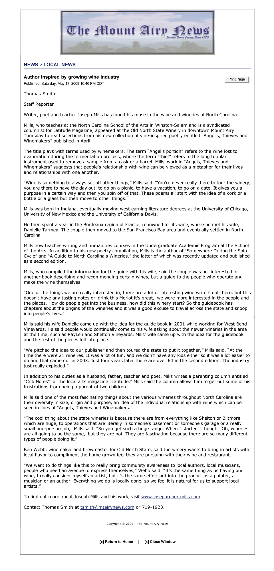 Mt. Airy News notes that local artist is inspired by local area wineries, include Shelton Vineyards.Original article in Mt. Airy News archives