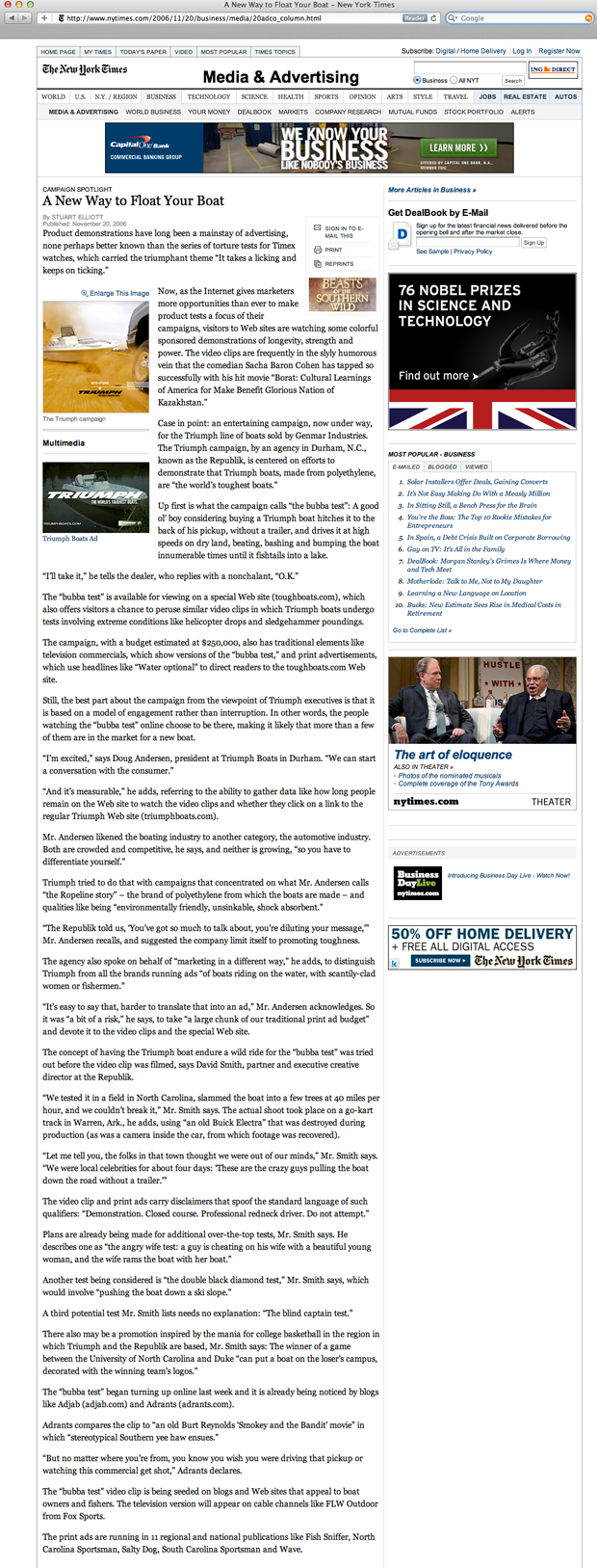 The New York Times talks about how product demonstrations online can now be focused components of a product's advertising campaign. Triumph and the Republik are featured.Read more about it here