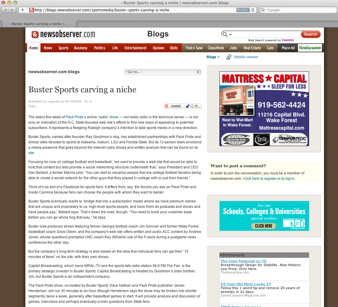 News & Observer Blog Features Buster Sports BUSTER SPORTS Feb 18 Written By Guest User News & Observer’s Blog features Buster Sports as they carve a niche. Read more about it here News & Observer Guest User