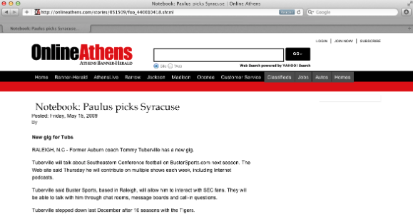 Online Athens Features Buster Sports BUSTER SPORTS May 15 Written By Guest User Online Athens spotlights coach Tommy Tuberville as he joins Buster Sports. Read more about it here Online Athens Guest User