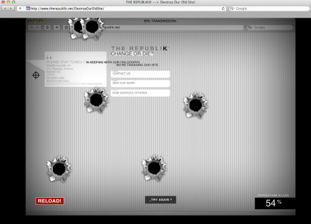"The Republik’s Old Web Site Blown Away By Over 26, 400 Blasts From AShotgun, Rifle and .44 Magnum".