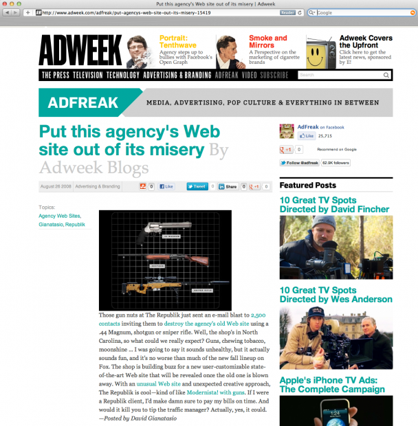 AdFreak Features The Republik's New Website THE REPUBLIK Aug 27 Written By Guest User The new Republik website featured on Ad Freak.Read about it more here Ad Freak Guest User