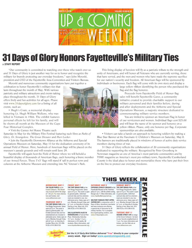 Up&Coming Weekly features Fayetteville as 31 Days of Glory honors soldiers. Original article in Up&Coming Weekly archives