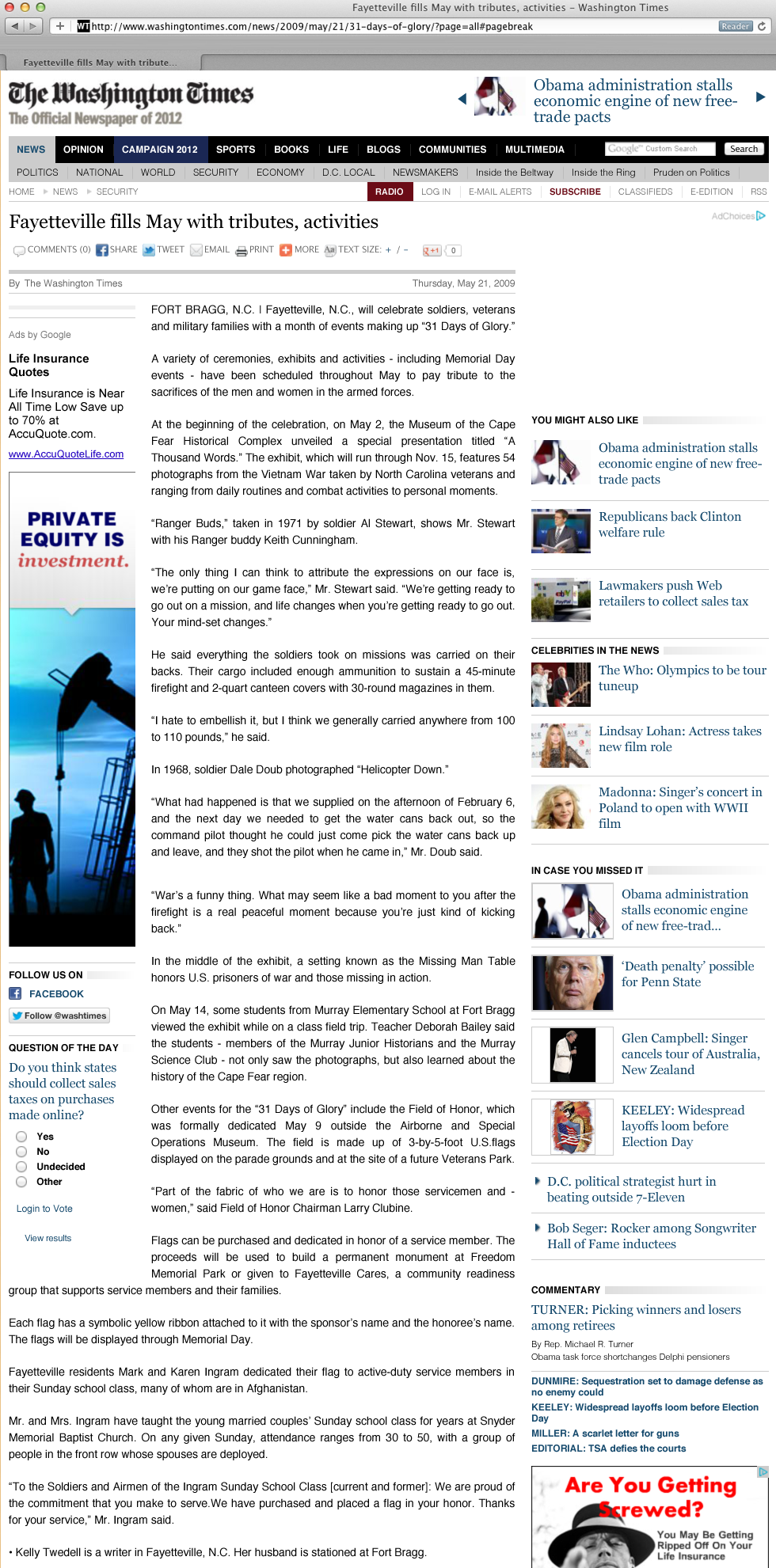 Washington Times features Fayetteville http://www.washingtontimes.com/news/2009/may/21/31-days-of-glory/